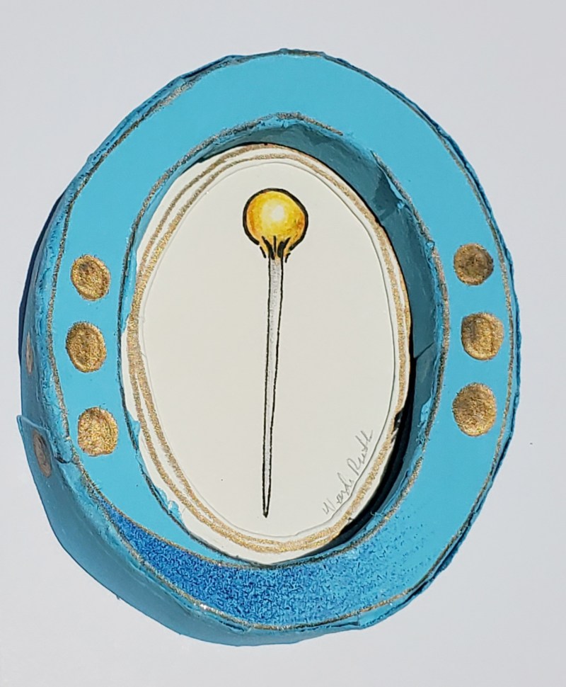 Lets put a pin in it, hand sculpted framed print. Made of cotton rag paper and hand drawn with colored pencil. Measures 2.5″ x 3.5″ & ready to hang. Original drawing.
